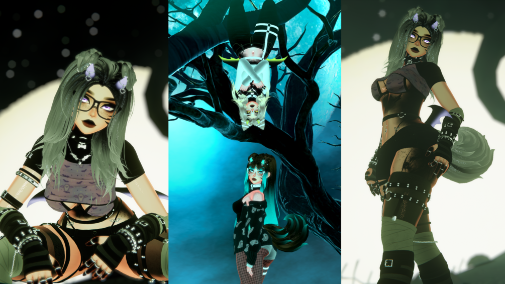 | Body by zinpia (EDITED BY ME, NO REUSE) | Head/Head Textures by DUCC#0008 (EDITED BY ME, NO REUSE) | Main Body Texture by Ying#6669 (EDITED BY ME, NO REUSE) | Hair Textures by Cicieaaa#7777 | Fluff's ToolBox | VRCFury Tool | GoGoLoco by Franada | Glasses by Salted | Converse by Plaz | Wholesome! by Wholesomevr | Spring Joint System by GM | Rings by DaddyIssuez | Bat Crop/Panty by Aika | Short Hair by Nessy | Long Hair/Ponytail/Long Sleeve Top/Turtleneck/Bra by Saikura | Horns/Skirt by Cinnaree | Jeans by JinxieWinks | Necklace/Harness/Belly Ring/Wings by Skeletib | Crop Hoodie by Jorgen | Cardigan by TheThiccWitch | Boots by The ThiccWitch | Loose Tank by FormulaRats | Goth Boots by cybersebs | Shorts by strelizias | Tattoos by Zennnity | Dog Tail by Zinpia | Dog Ears by velvet | Leg Warmers by Gelw0 | Arm Warmers by Gelw0 | Puppy Ears/Tail by Loki's Vanity | Bat Spring Joint/Fishnets by Beaniebaby | Pen by basil.psd | Flow Toy by Bookieson | Sensory Board by Mystic | Unity Capture Tool by Naudine | In-game pics by carnor | Showcase by carnor
