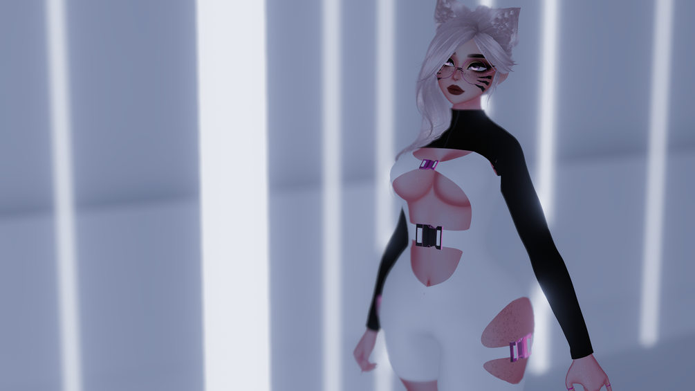 | Body by Pandaabear#9873 (EDITED BY ME, NO REUSE) | Head/Head Textures by DUCC#0008 (EDITED BY ME, NO REUSE) | Main Body Texture and Face Stripes by Ying#6669 (EDITED BY ME, NO REUSE) | Hair Textures by Cicieaaa#7777 | Fake Index by Milkers~#4457 | VRCFury Tool | GoGoLoco by Franada | Rings by xSnail#2902 | Hair by @NESSYY. | Outfit by cakie.exe | Boots by Gashina | Glasses by Moon Jelly |