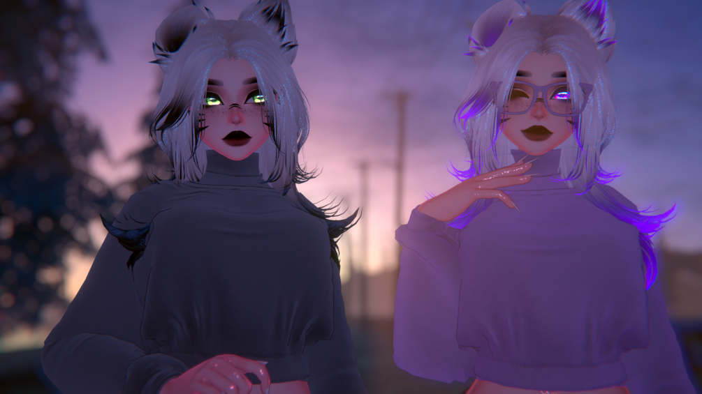 | Body by Pandaabear#9873 (EDITED BY ME, NO REUSE) | Head/Head Textures by DUCC#0008 (EDITED BY ME, NO REUSE) | Main Body Texture by Ying#6669 (EDITED BY ME, NO REUSE) | Hair Textures by Cicieaaa#7777 | Fluff's ToolBox | VRCFury Tool | GoGoLoco by Franada | Hair by @NESSY! | Jeans by JinxieWinks | Converse by Plaz | Sweater by Petty Store | Turtleneck by Yan/Mutt | Ears by Ares | Tail by Cupkake | Glasses by Salted |